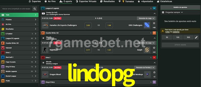 O lindopg oferece uma grande seleção de opções de apostas em e-sports com probabilidades competitivas